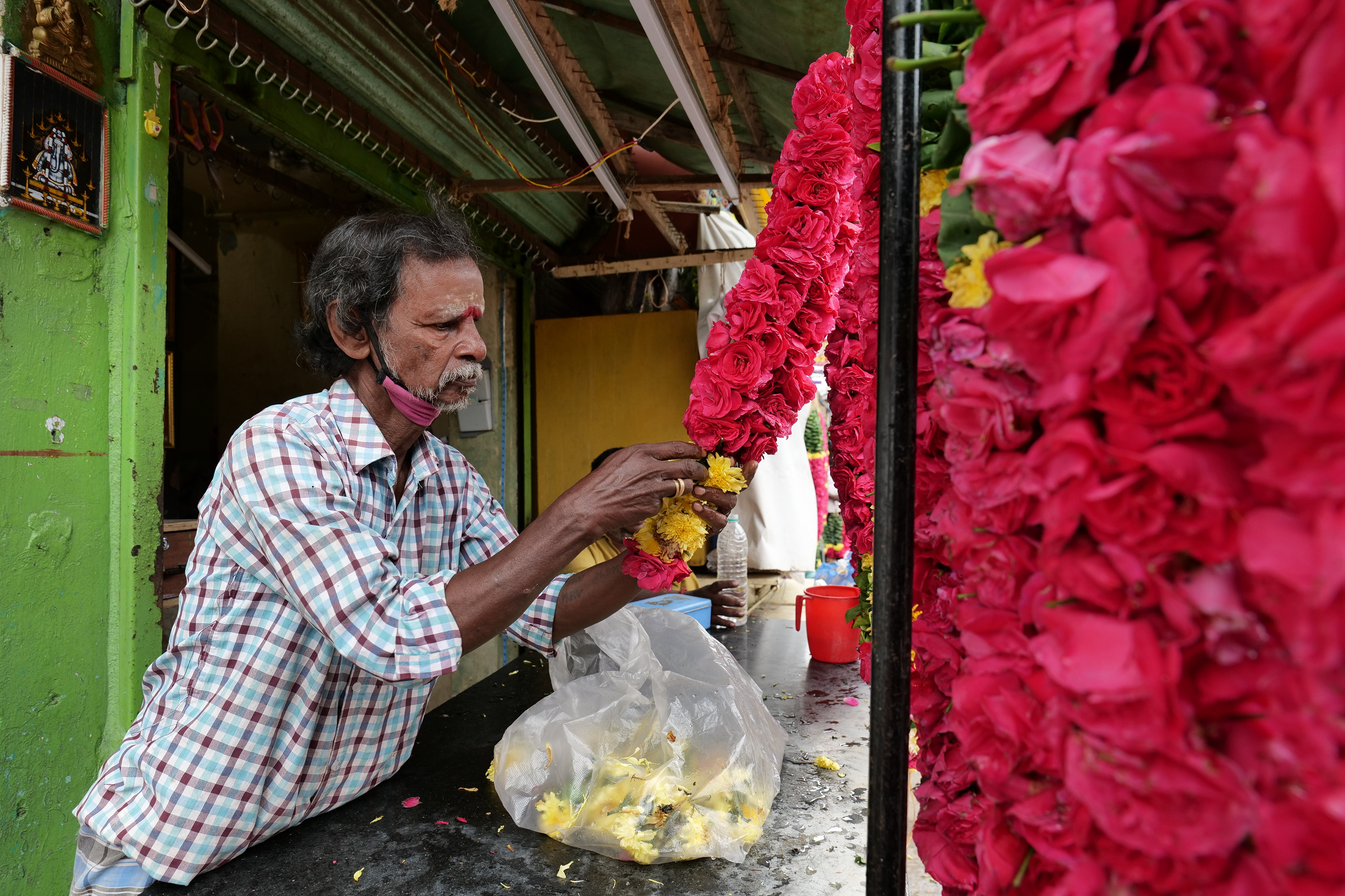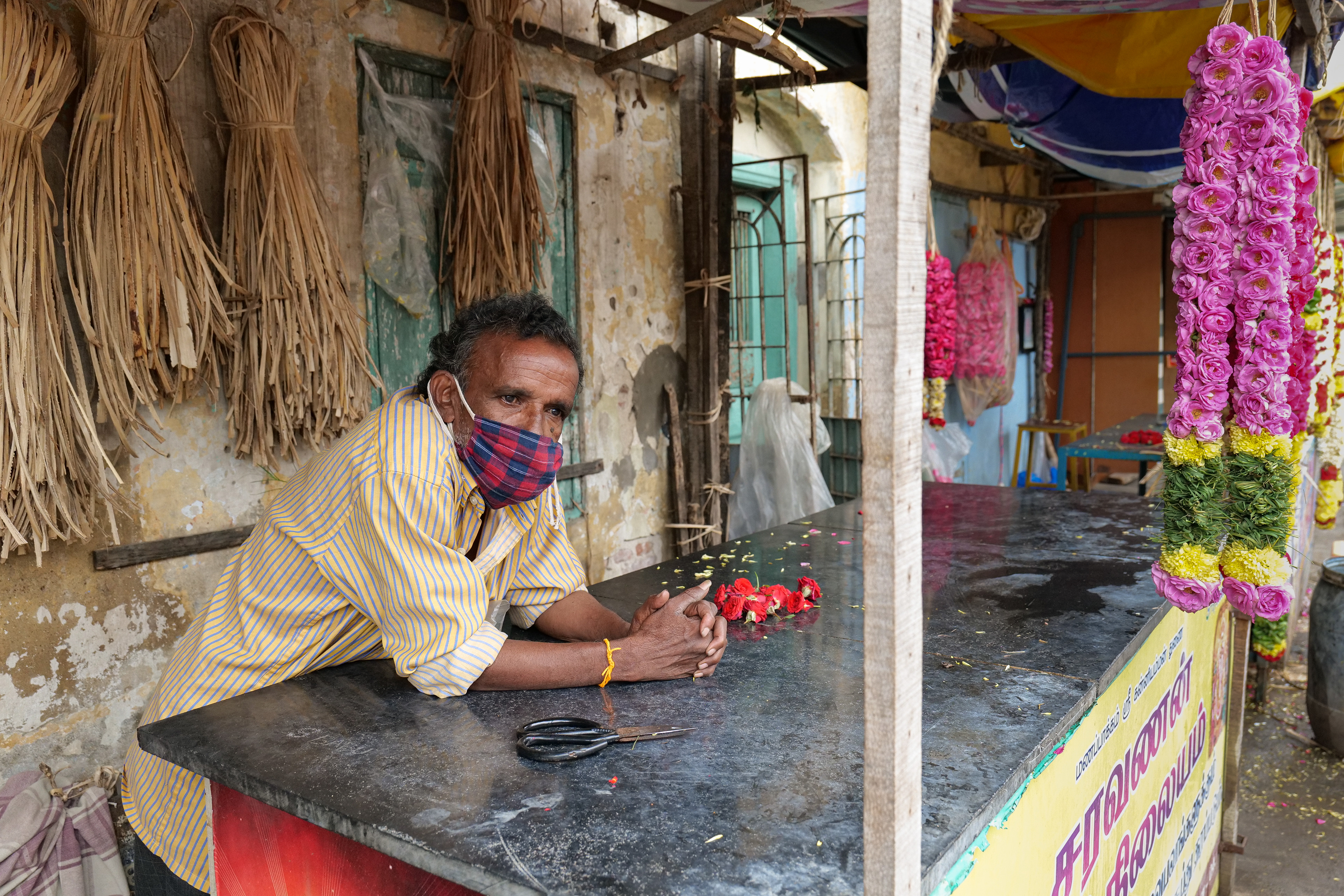 I started my walk at Mylapore Kapalesshwar temple market. A lot of those shopkeepers were sharing the trouble they faced. One garland shopkeeper told me that the sales have considerably come down. During normal times many tourist guides used to take foreign tourists who used to buy maalaas. Now those guides have lost their jobs and the garland shopkeeper has lost business.