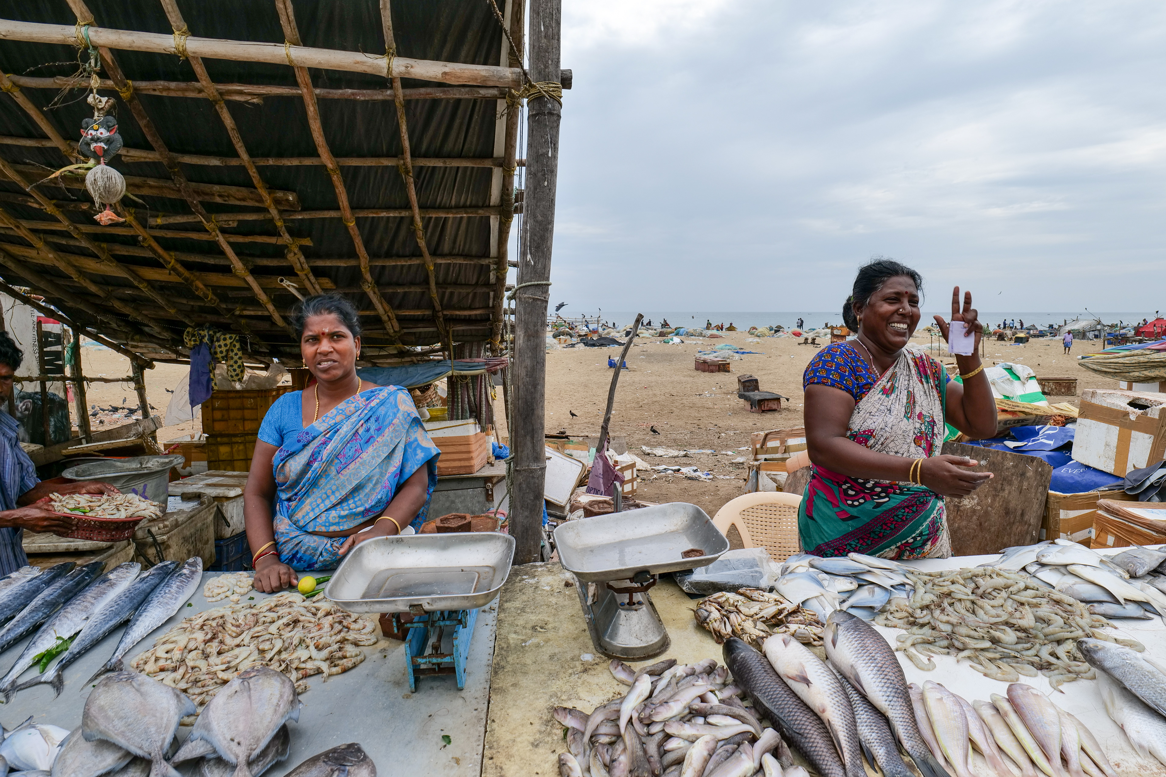 Things were totally different in the fish-market at foreshore near Marina. The fish market was buzzing with activity. One paati at the fish market tells me this “பயம் எல்லாம் படக்கூடாது. தைரியமா போராடனும்”. Yes, she was wearing her mask. I feel people who make the bottom part of the economic pyramid are quite resilient.