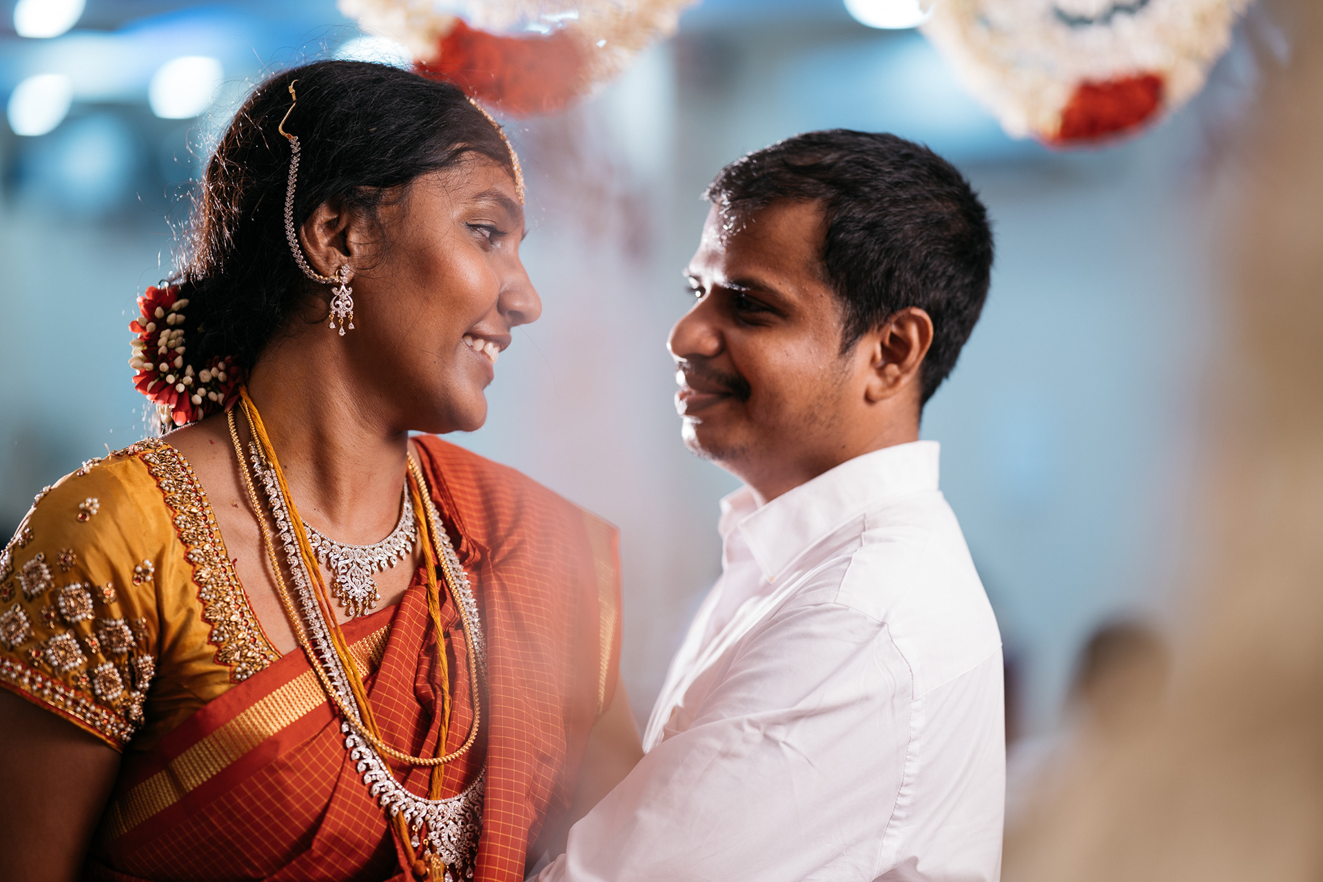 It was 25th November 2020 during corona times when there was a cyclone alert in Chenani. With a lot of caution I somehow figured out a road to brides home in Old Washermanpet where nalangu event was happening. I had promised the brides mom Revathi that I will be sure be available for their wedding. During her engagement I was not available as I had to attend one of my close friends wedding. The whole family was full of fun and energy. It was raining and I decided to shoot some pictures in rain. Here are some of the shots from nalangu followed by wedding after a couple of days. The bride was an environmentalist and made sure even her jewellery was made of flowers. I enjoyed every moment of shootings this wedding.